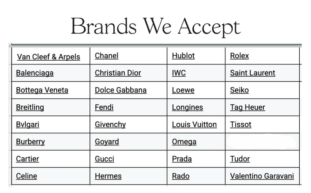 We only accept items from the approved high-end brands listed, and they must meet the following condition standards: